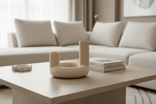 Beige Ceramic Ring Double Bud Vase / Candle Holder