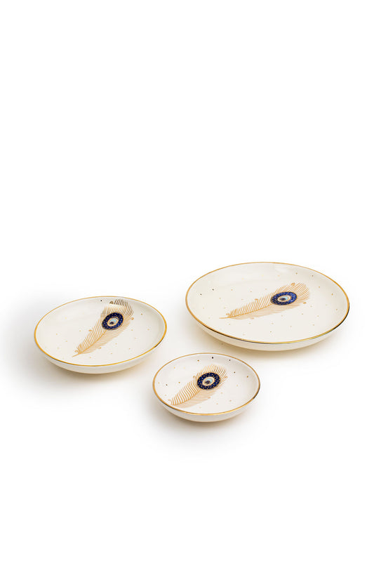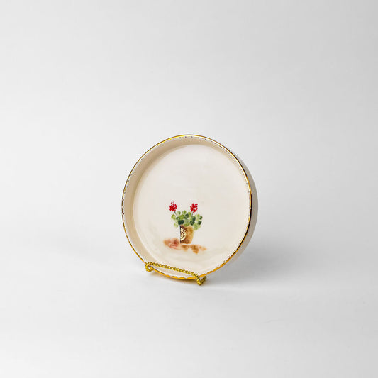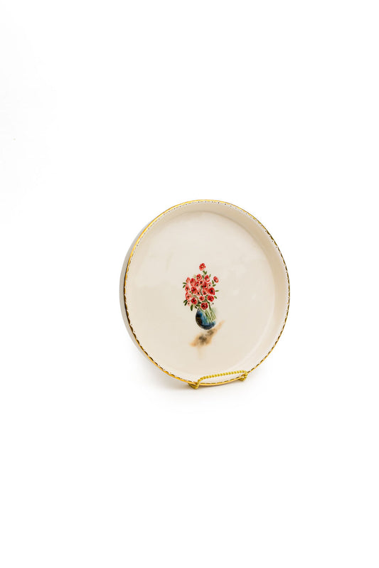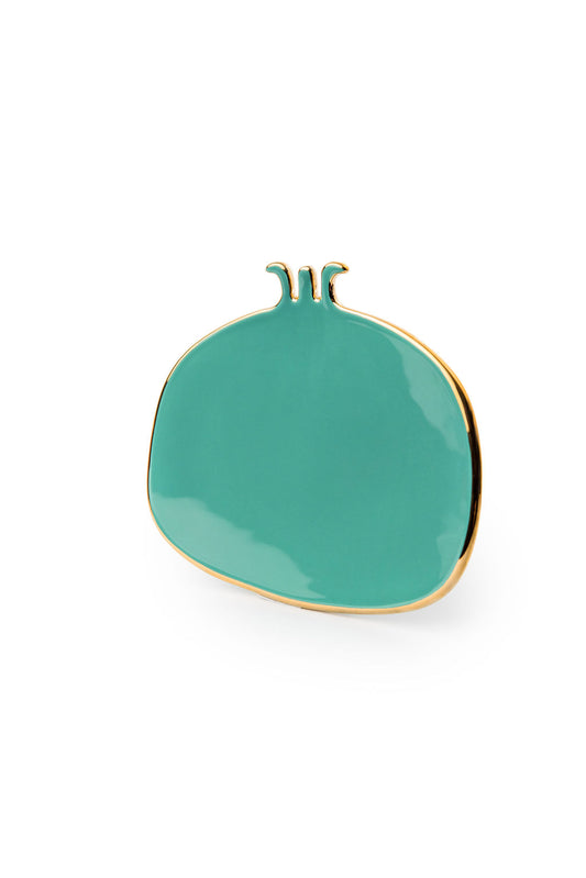 Green Hand Made Ceramic Pomegranate Plates With Gold Edge