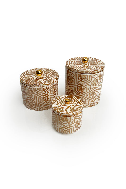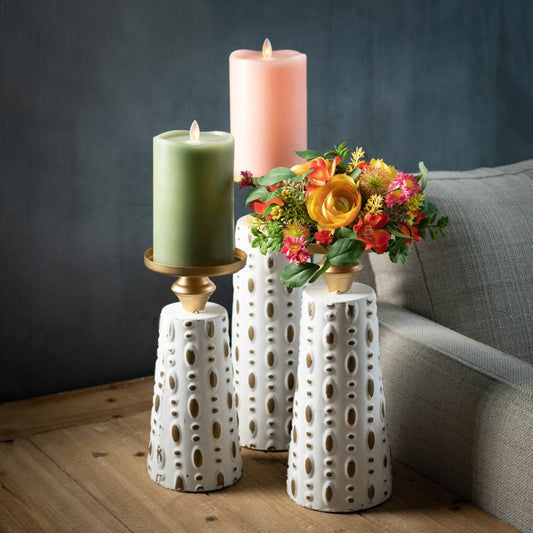 White And Gold Pillar Metal Candle Holder | Set Of 3