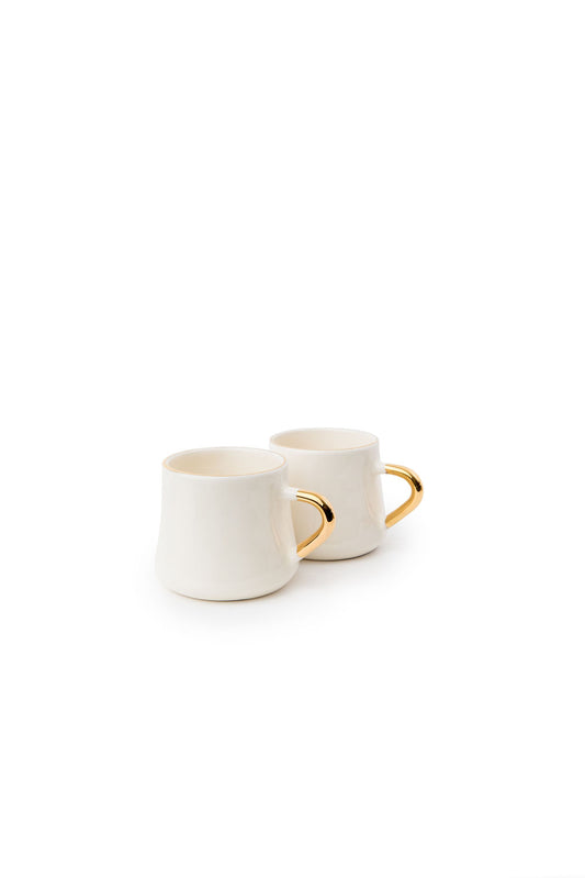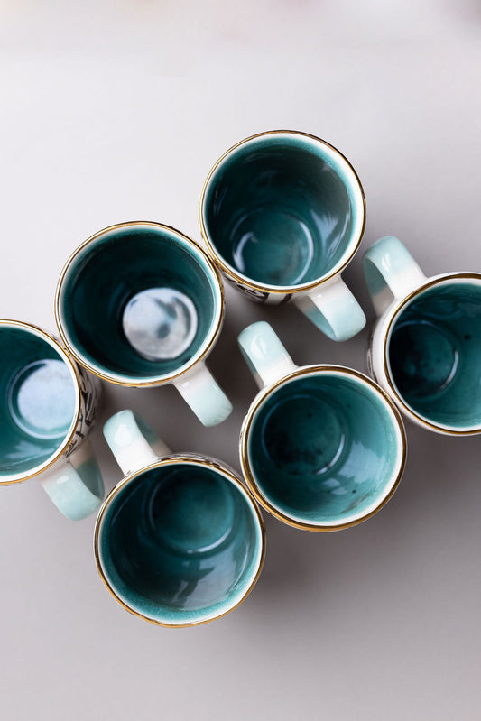 White And Turquoise Ceramic Mugs | Hand Made Black And Gold Pattern