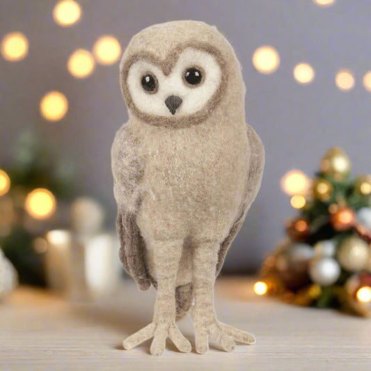 Ivory and Tan Wool Owl Decor