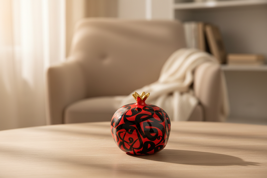 Matt Red Ceramic Pomegranate With Gold Calligraphy