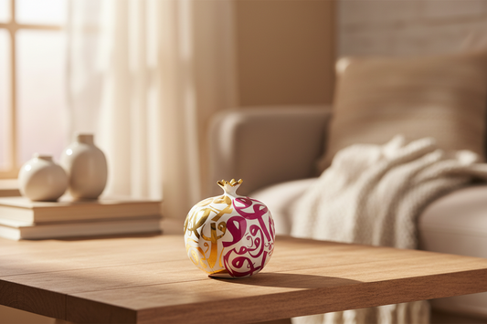 White, Gold And Pink "V" Calligraphy Pomegranate