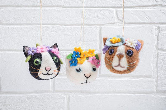 Cat Faces with Flowers Ornament