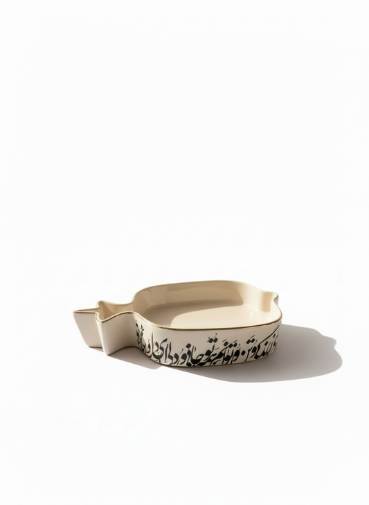 White Hand Made Ceramic Pomegranate Plates With Gold Edge