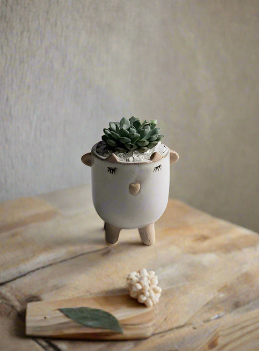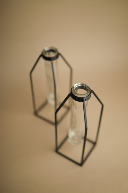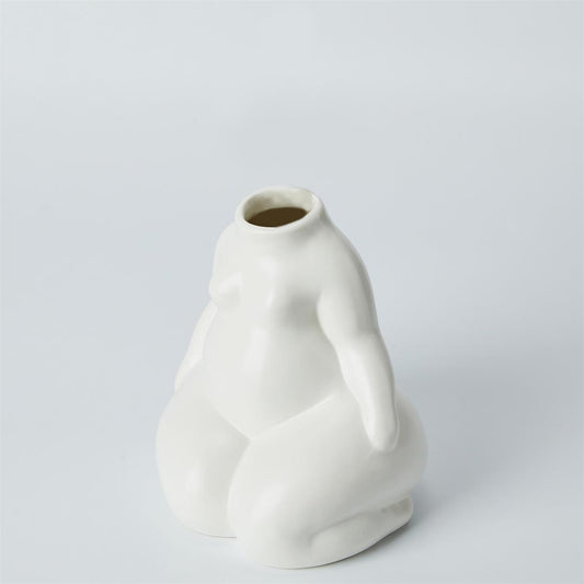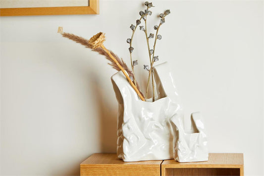 Beige Ceramic Ring Double Bud Vase / Candle Holder