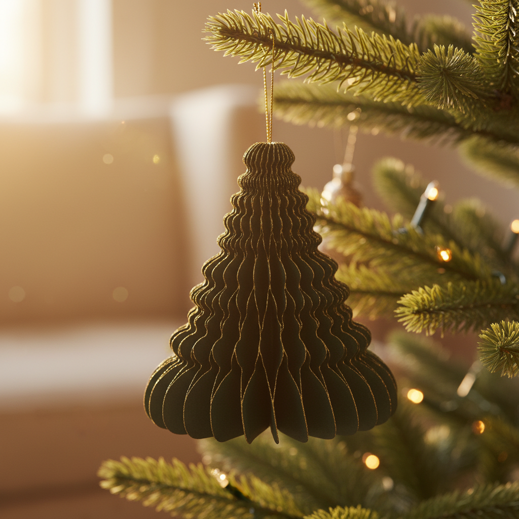 Make your tree stand out with a touch of refinement using the Green Pleat Fancy Tree Ornament. This elegant paper ornament features a sleek, pleated design that effortlessly adds sophistication to your holiday decorations.